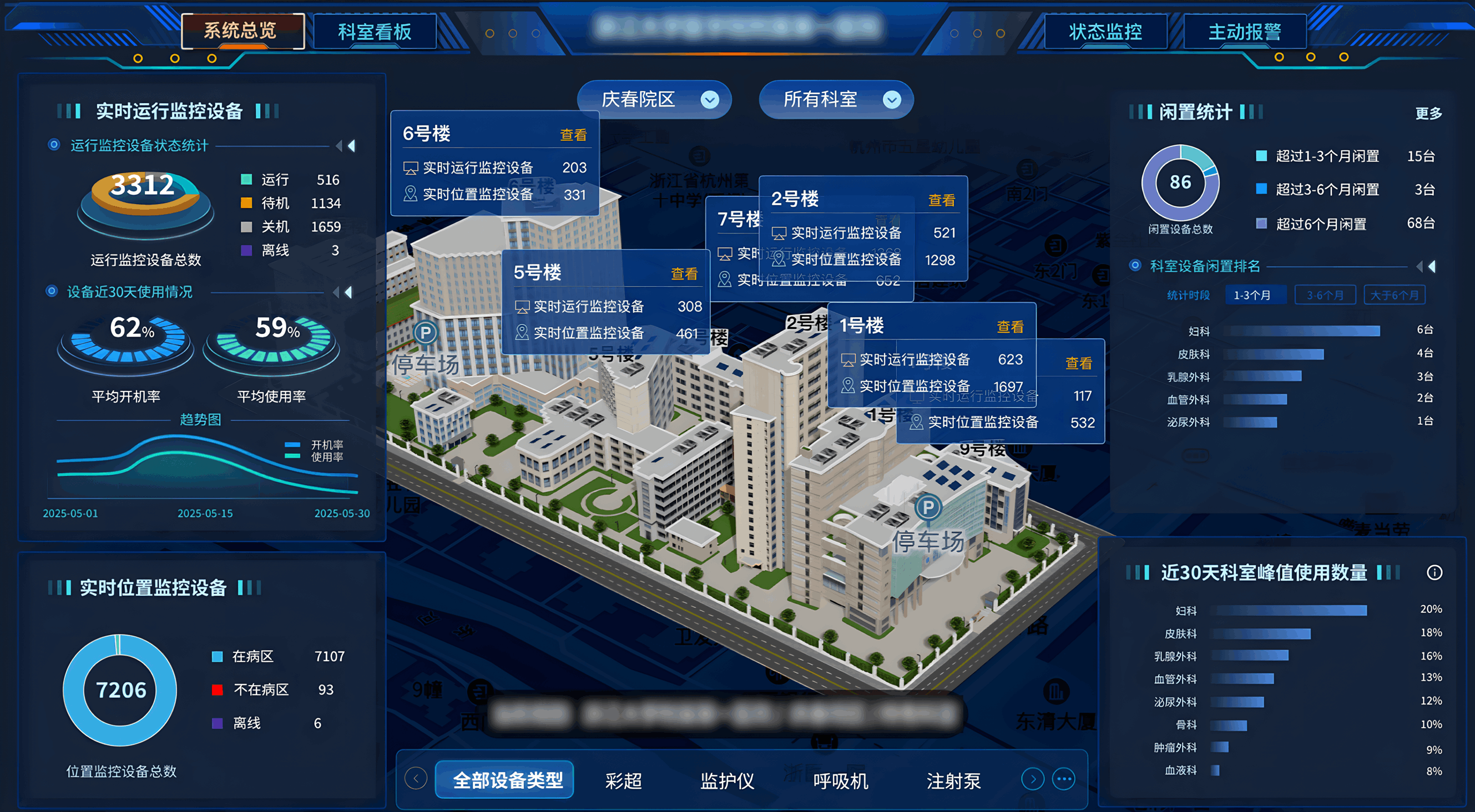 院内外地图一体化展示 / 高质量室外楼栋定制化建模 / 高精还原室内3D墙体 / 设备设施3D模型支持独立楼层展示和多层楼层叠加展示 / 楼宇3D模型支持压缩动画展示高精矢量三维地图地图,可任意旋转、缩放、切换任意视角